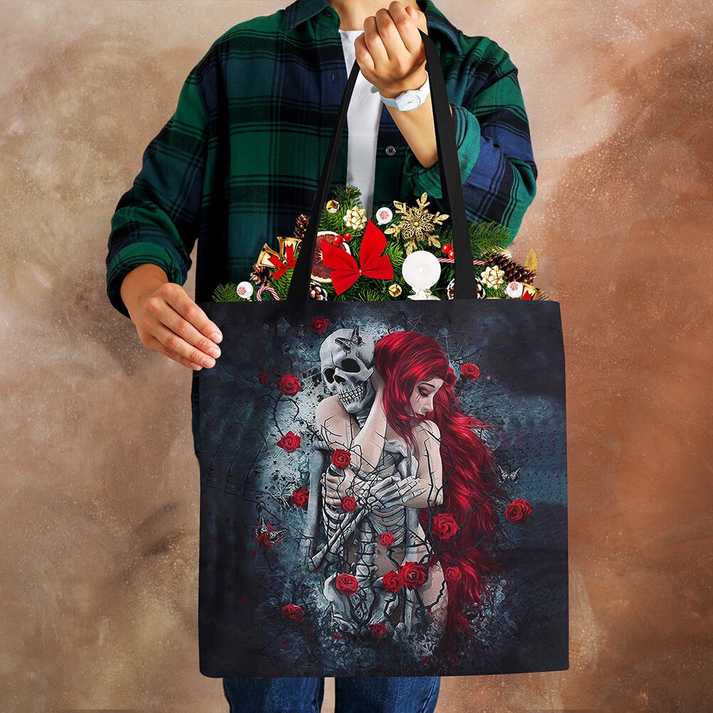 Day of the Dead Floral Skull Print Tote Bag Handbags for Women Halloween Sugar Skull Girl Shoulder Bags Large CapacityItem Name: Tote BagMaterial: Linen PolyesterSize: 40×40 CM/15.7×15.7 inchesDesign: as picture showPacking List: 1* Tote BagFeatures:*Eco friendly high quality linen material.*Novelty and beautiful Design.Eco-friendly imported ink printing and dyeing.No harm to health .*Foldable,Practical and reusable . Very useful when go out and environment friendly*Used as 1) Tote Bag (personalized casual tote bag for daily use. both for fashion women & men.) 2) Shopping Bag (foldable & reusable&eco friendly)3) Storage Bag (home storage for clothes,toy, books,bedding,sundries ,etc) *We support Drop Ship , Wholesale and Personal Customized , welcome to contact us.Friendly Notice:1) All tote bags are handmade, there may be 1-2cm deviation exist. 2) Actual color may be slight difference between the monitor display picture because of the light brightness.