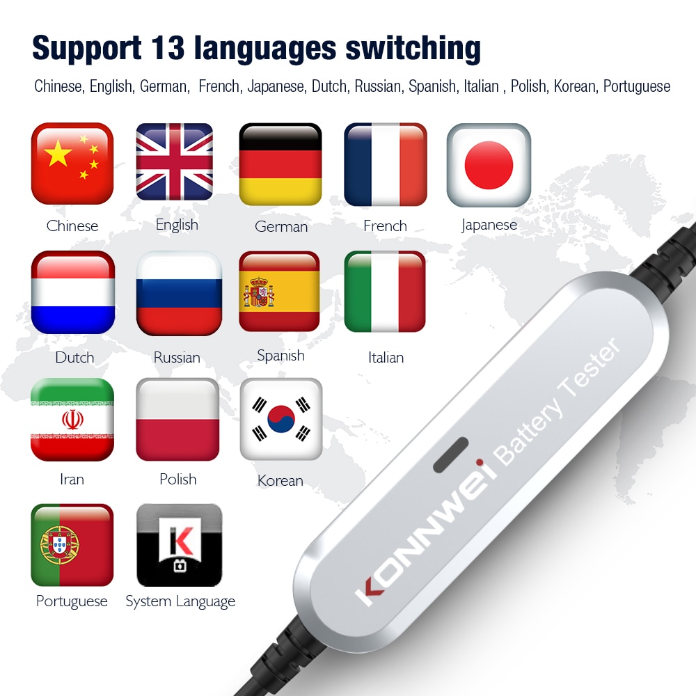 KONNWEI BK100 BK200 support Chinese, English, German, French, Japanese, Dutch, Russian, Spanish, Italian, Korean, Portuguese, Polish, Persian.
