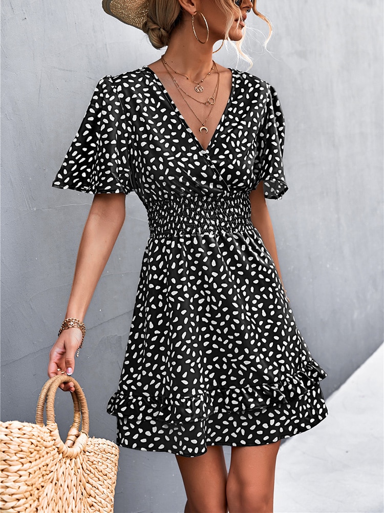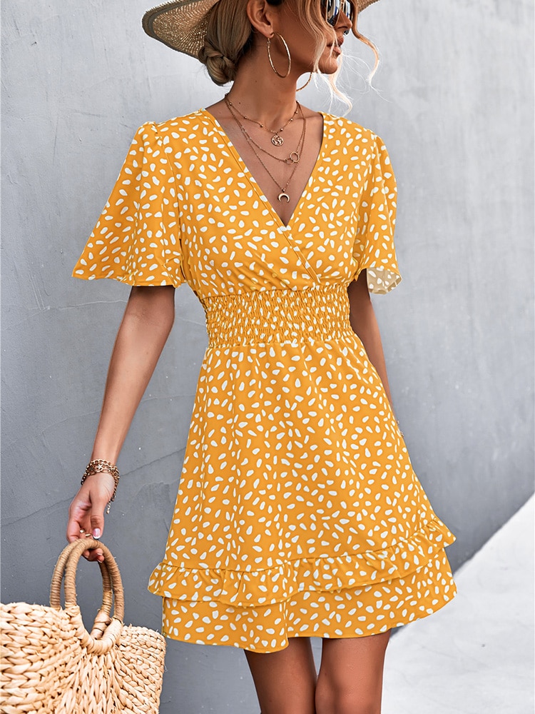 Sexy V Neck Mini Dress For Women Fashion Floral Slim Short Dresses Female Lotus Leaf Sleeve Elegant Dress Summer Vestido Mujer