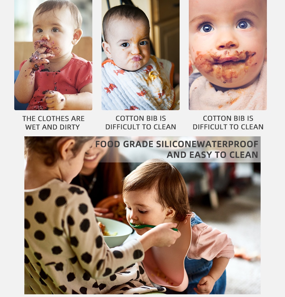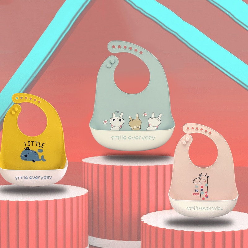 2022 Cute Baby Bibs Waterproof Silicone Bib Infant Toddler Feeding Saliva Towel Cartoon Adjustable Children Apron with Pocket