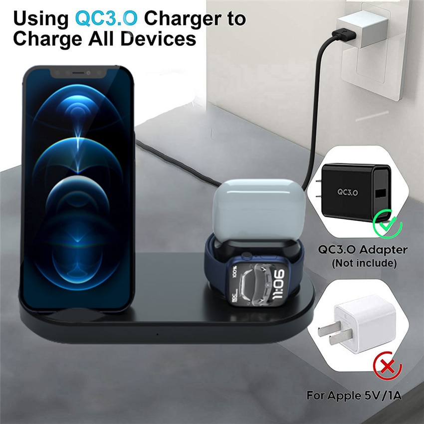 100W 3 in 1 Wireless Charger Stand for iPhone 14 13 12 11 X 8 Fast Charging Dock Station for Apple Watch iWatch 8 7 SE 6 Airpods