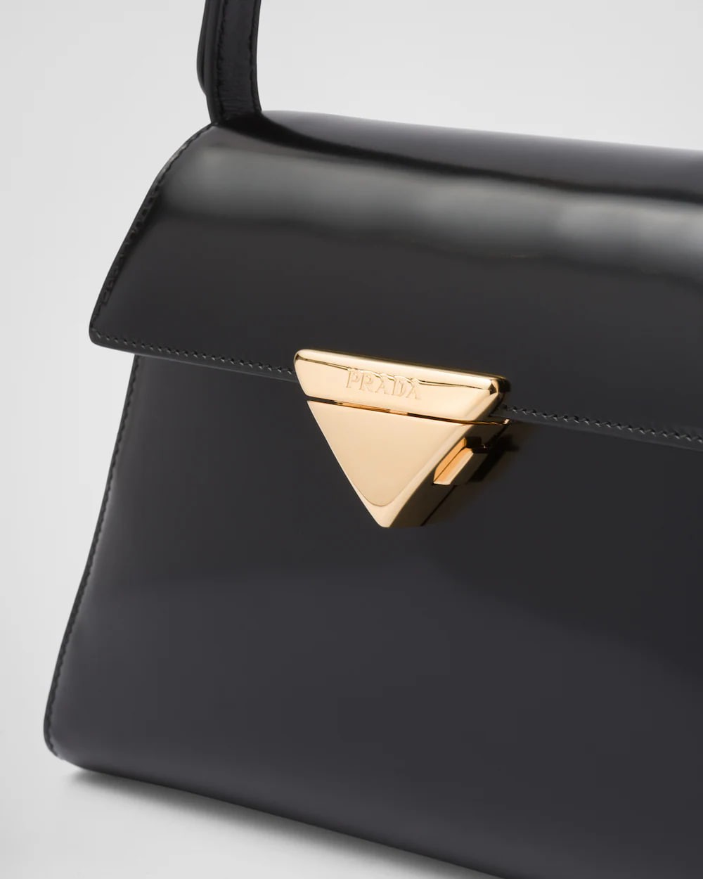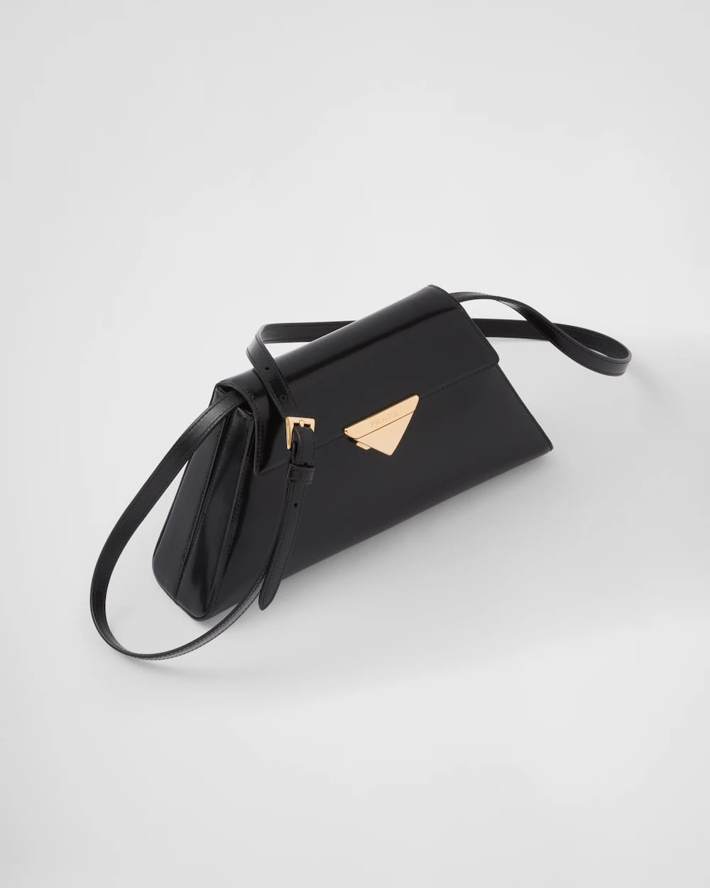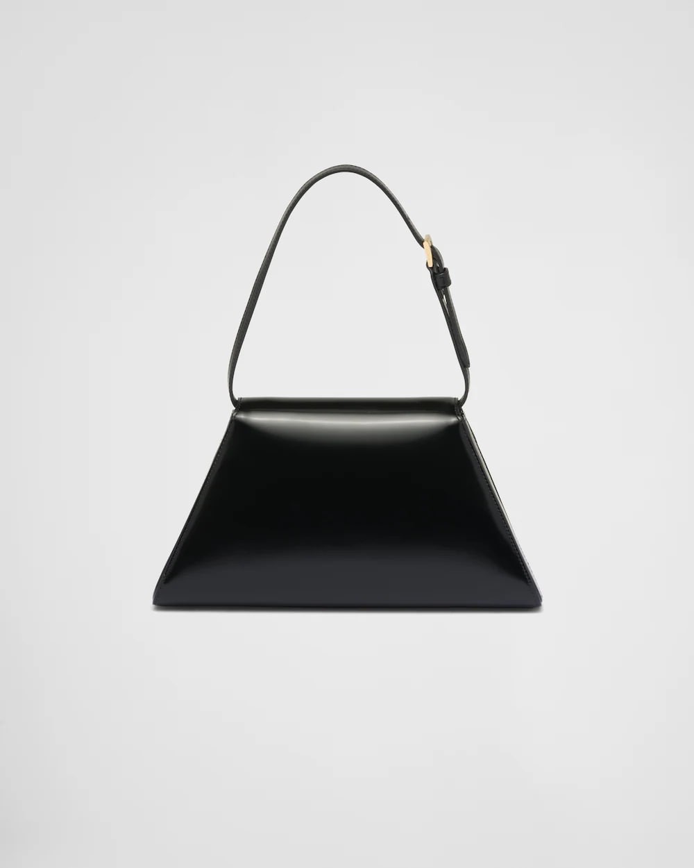 In an open dialogue between the past and the present, the Fall/Winter 2023 collection writes the rules of new elegance. Rigid lines with graphic quality reinterpret the vintage reference, introducing innovative design solutions. Crafted from brushed leather, this tote is the label's signature material, and its sleek geometric silhouette inspires refined gestures. The triangle logo is transformed into delicate details, embellishing and closing accessories, cementing the connection between tradition and modernity.