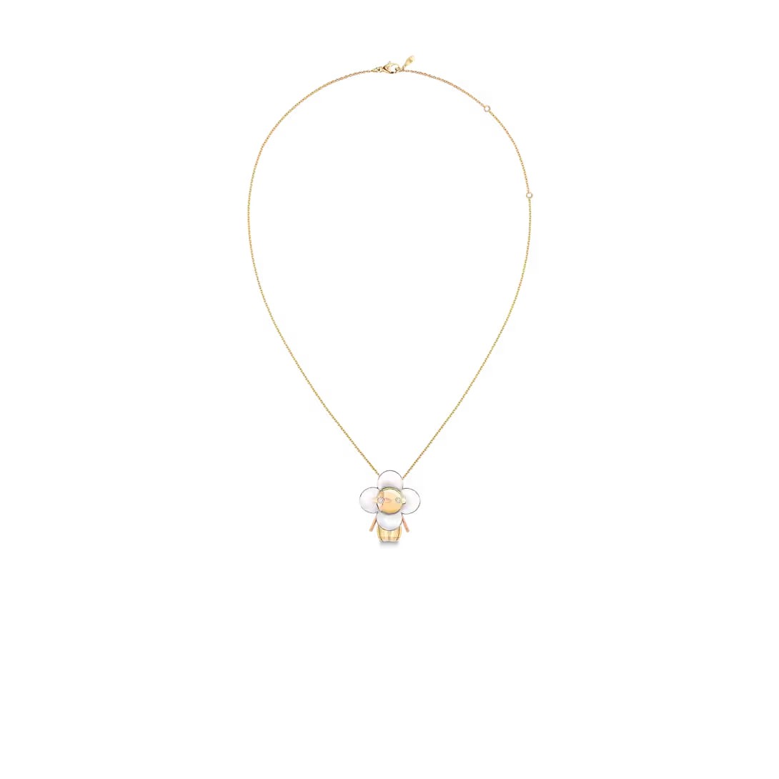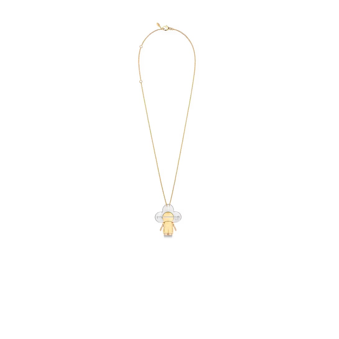 Vivienne, the Louis Vuitton mascot, is transformed into 18K gold jewelry, lighting up the world's eyes with dazzling diamonds, one of which is embellished with Monogram flowers. Can be worn as a necklace or brooch, or displayed as a work of art.